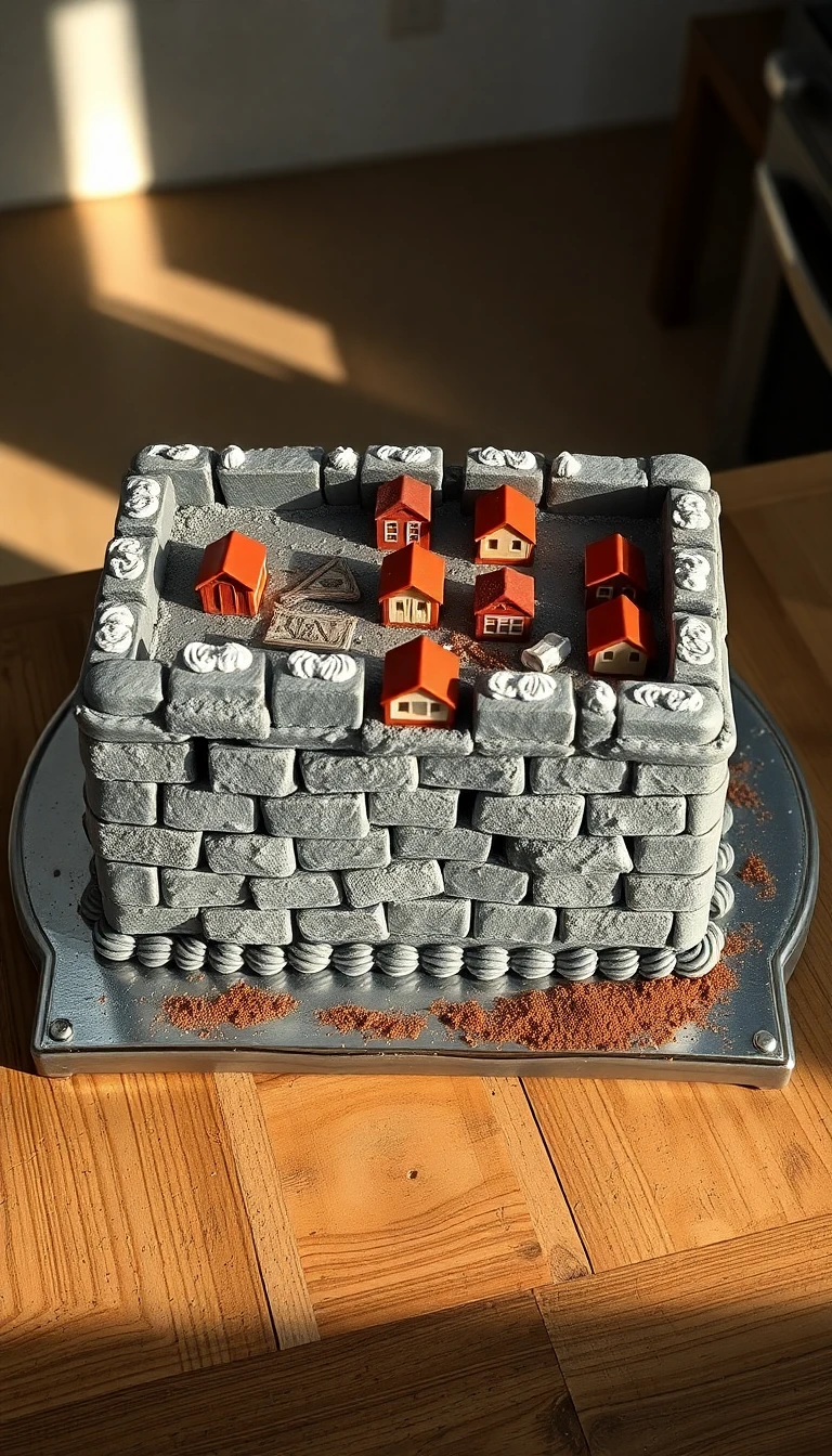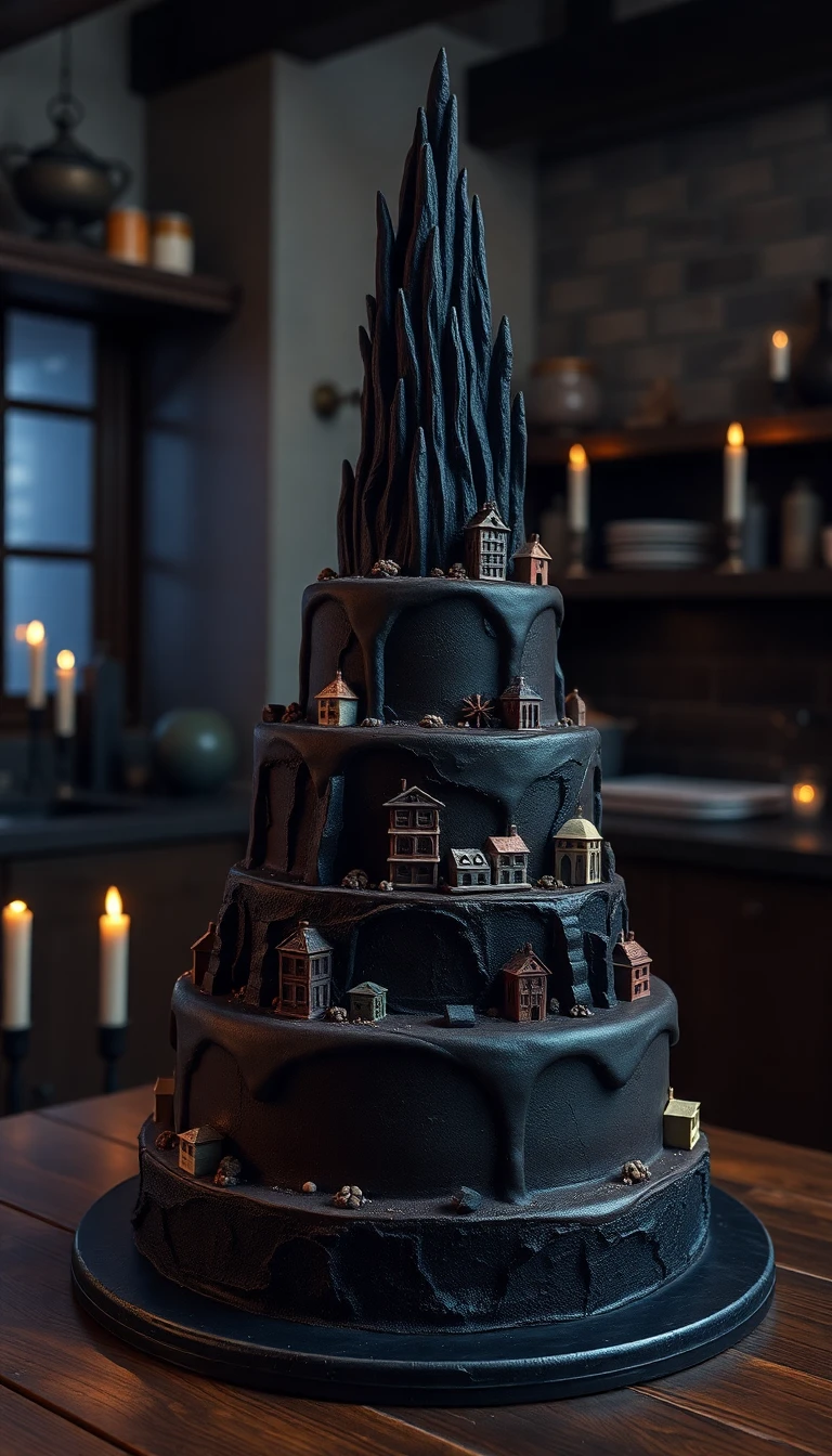 The “Underground City Cake” is a super cool treat inspired by the world of Attack on Titans. This amazing cake looks like a tall, dark mountain with little houses all around it. The layers are designed to look like the ground, and the top is sharp and pointy, just like a rocky peak. The tiny houses remind us of the brave people living in the city, always ready to face giants. It’s a fun way to enjoy a story while having a delicious dessert!