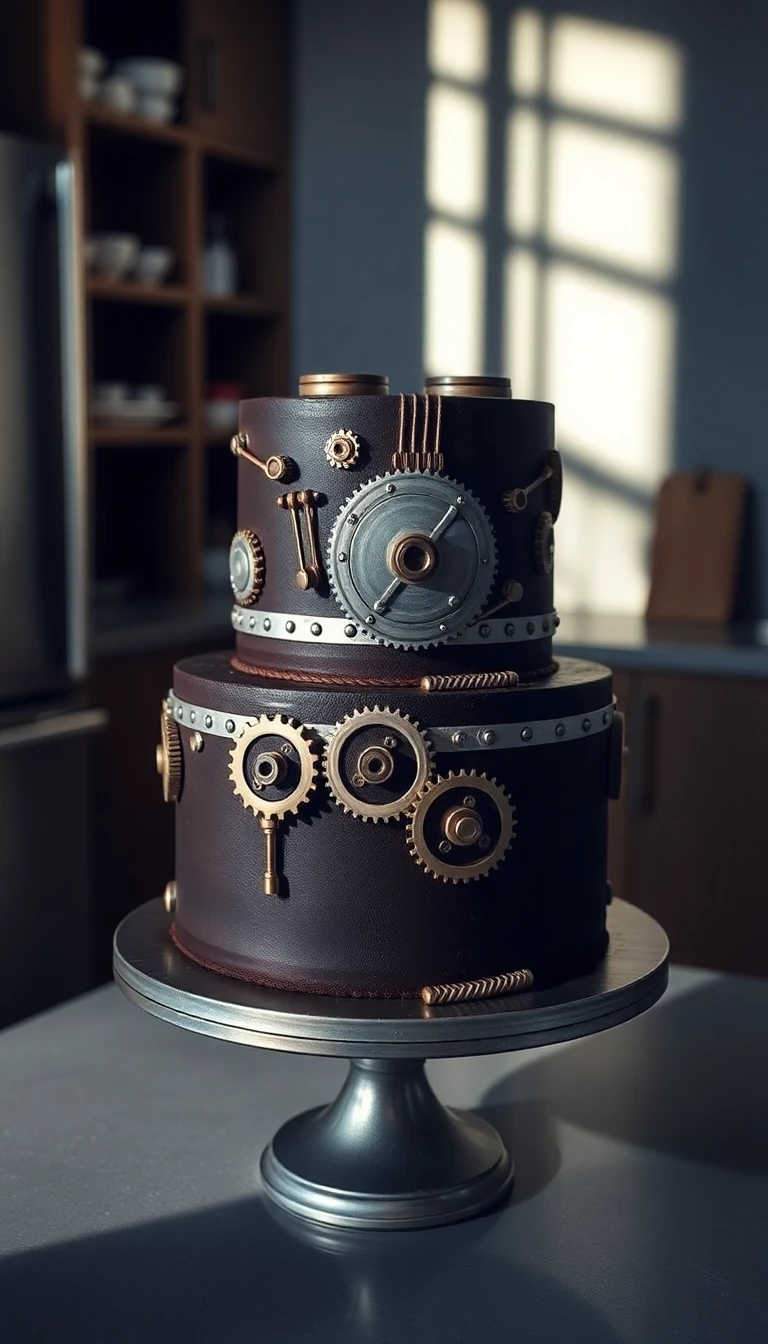 The ODM Gear Cake is a fun treat inspired by the popular show “Attack on Titan.” This cake is decorated with shiny gears and cogs, just like the cool machines the characters use to fight giants. The dark colors make it look strong and exciting. It sits proudly on a silver stand, ready to be the star of any party. Everyone loves celebrating with a cake that reminds them of their favorite heroes and their brave adventures!